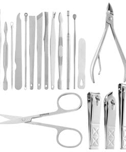 - Contains 18 Pcs nail and toenail tools for three functions including hand care, facial care and foot care which can meet all of you needs Manicure, pedicure, eyebrow shape, anti-acne, exfoliate etc. high quality and inexpensive.