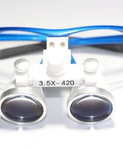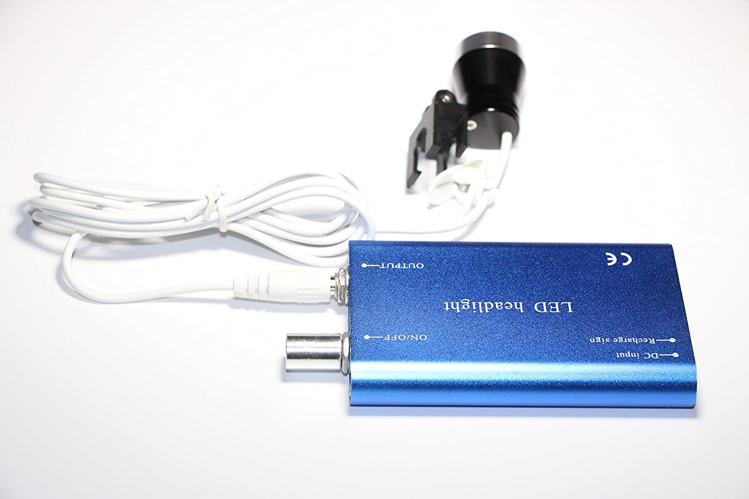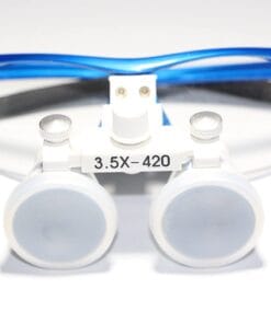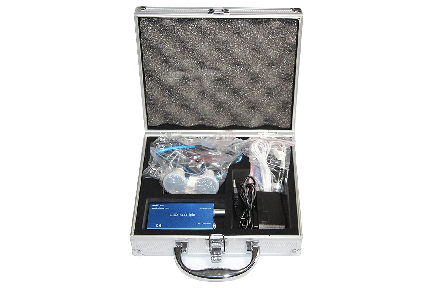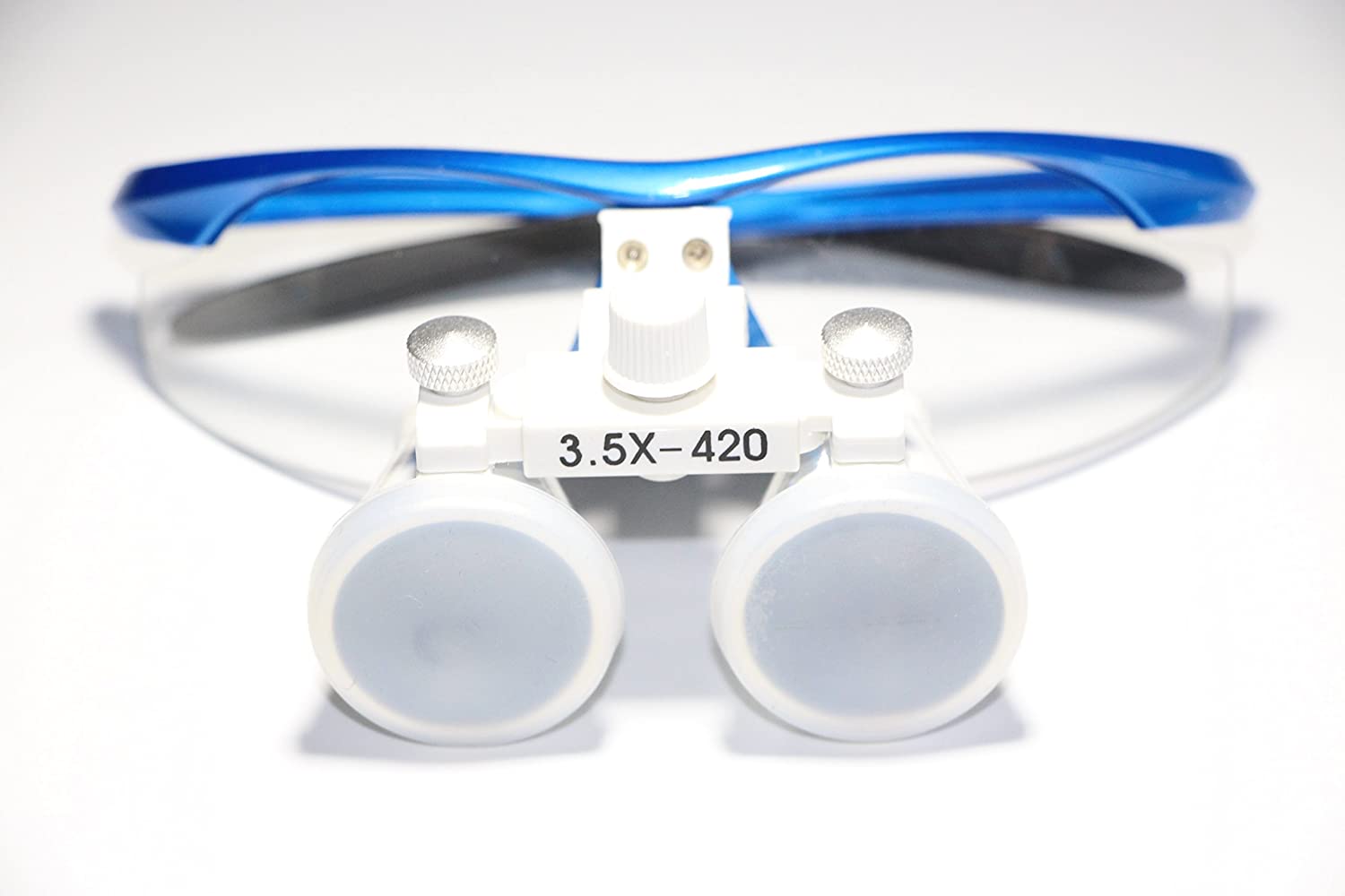 Dental Power Dental Binocular Loupes 3.5 X 420mm + LED Head Light Lamp +Aluminum Box (Blue)