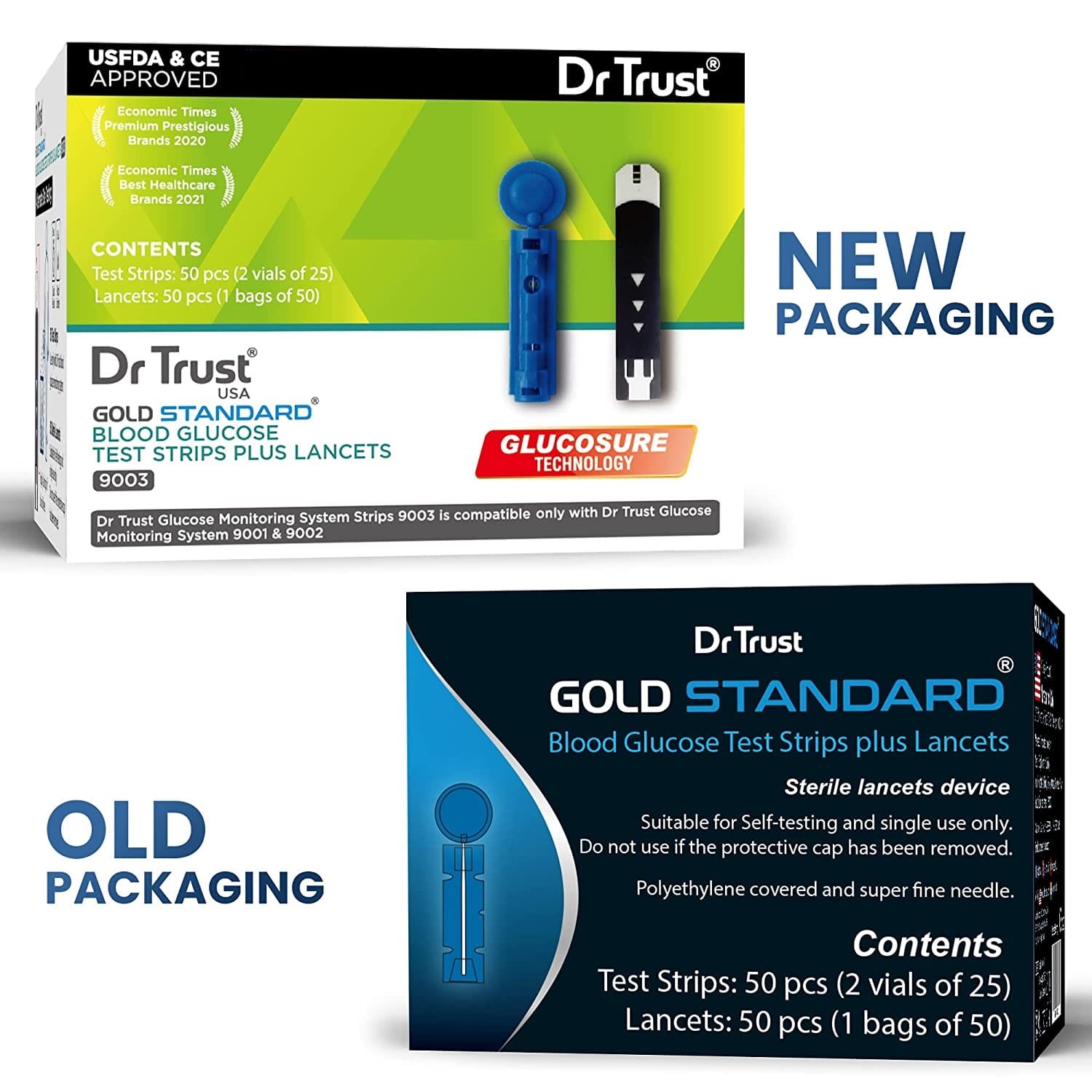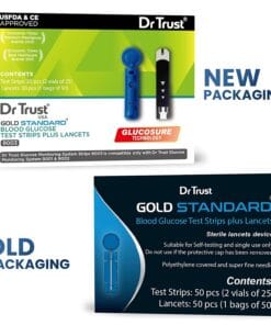 Dr Trust USA Gold Standard Blood Glucose Test Strips Plus Lancets – 50 Strips (Black)