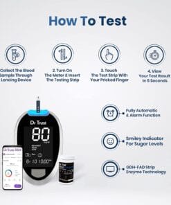 - The Dr Trust Glucometer strips make the blood glucose monitoring easy as no special setup is required for testing.