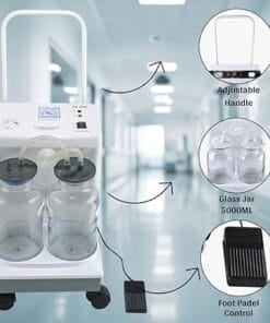 Electric Suction Machine Apparatus (7A-25D) Trolley with 5000ml Glass Jars remove phlegm,