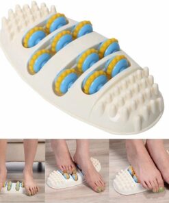 - The latest designed plastic roller foot massager, combined with the human foot, makes it difficult to massage the soles of the feet completely. Just step on the five wheels of different sizes to effectively massage the lumps on the feet.