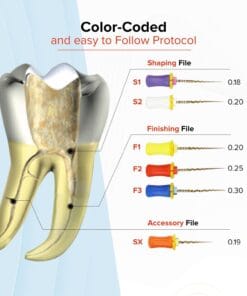 - Drying and obturation solutions specifically designed for Protaper files, with the same color-codes for instant identification