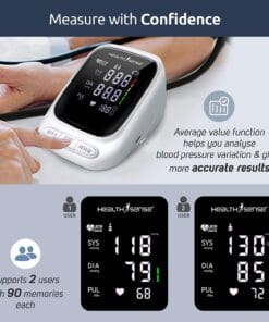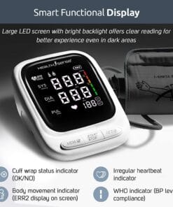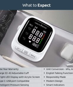 HealthSense Heart-Mate BP144 Upper Arm Automatic Digital Talking Blood Pressure Monitor, Heart Rate Machine & Pulse Checking meter for Accurate Home Monitoring with 1 Year Warranty, Batteries Included (White)