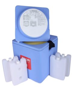 - Vaccine storage capacity: 0.80 ltrs., weight – fully loaded: 2.4 kgs., weight – empty (with empty icepacks): 1.4 kgs