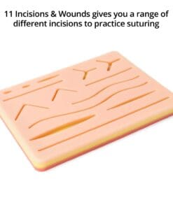 - This suture practice pad gives you a range of different incisions and wounds of various depths and types to practice suturing.