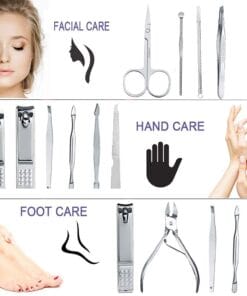 The professional nail set includes 12 kinds of hand, face, and foot care. The perfect packaging box can fix every accessory, which is very complete and easy to store.