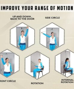 - This plastic shoulder pulley with door strap is specifically designed to assist patients & old aged people having shoulder problem. This pulley kit is a complete shoulder rehabilitation system for reducing pain, completing rehab and returning the shoulder joint to full motion.