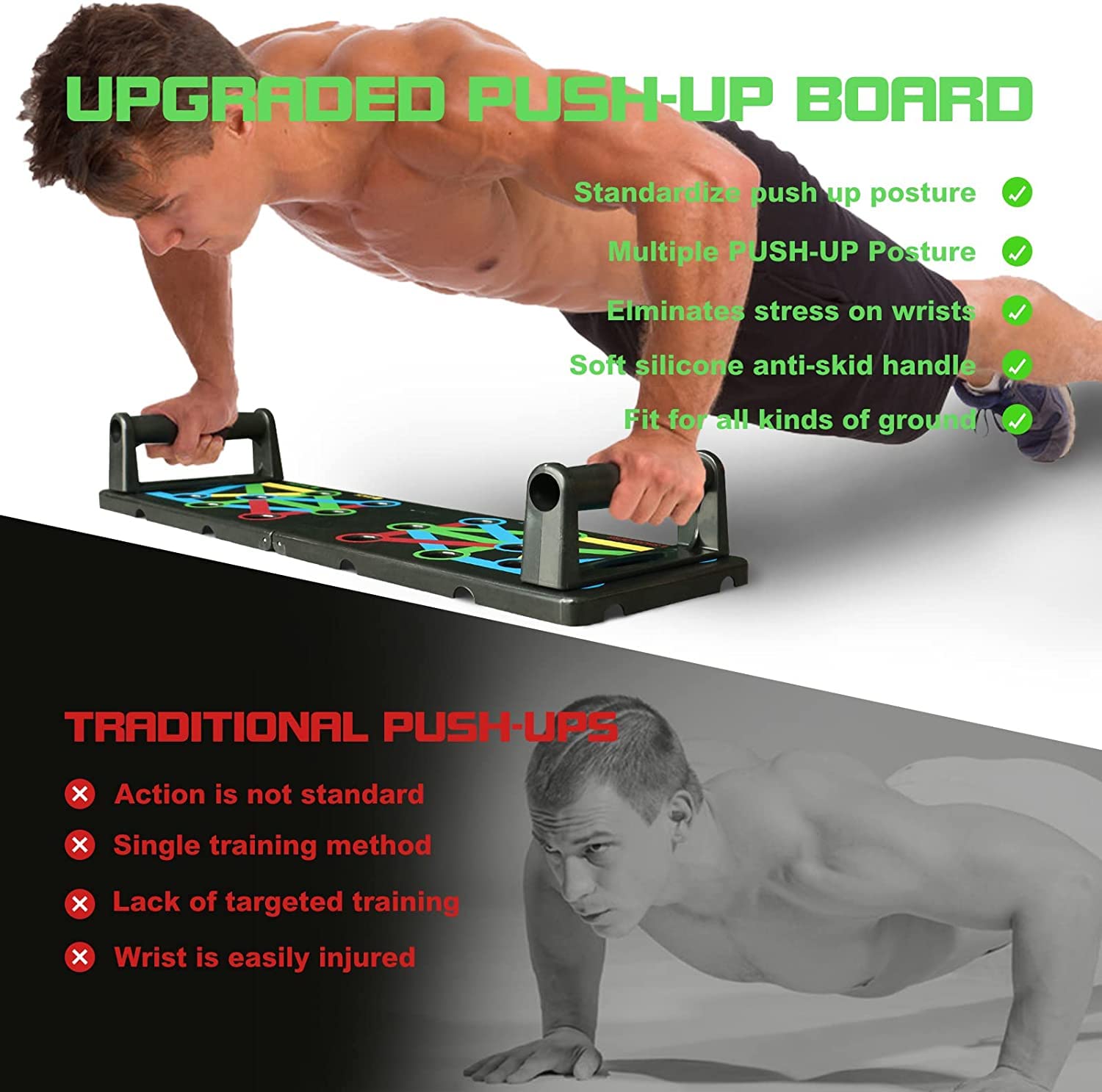 The push up board is color-coded to work the correct muscle groups based on the color area, giving you a variety of efficient push-up positions.