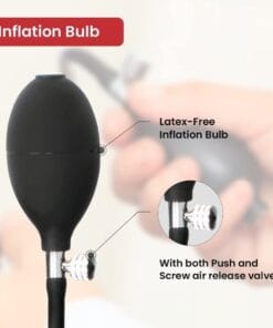 - INFLATION BULB WITH AIR RELEASE VALVE: The inflation bulb is made of rubber and is crack resistant and non sticking The air release valve is chrome plated to avoid corrosion. The device has a dual-tube bladder for an efficient air release
