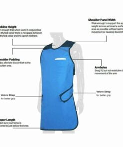 - Neckline Height:- High enough that when worn in conjunction with thyroid collar there is no space between the thyroid collar and the apron neckline.