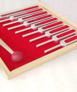 Tunning Fork Chakra Weighted Colour Set of 8 Including Velvet Pouch and Mallet Wooden
